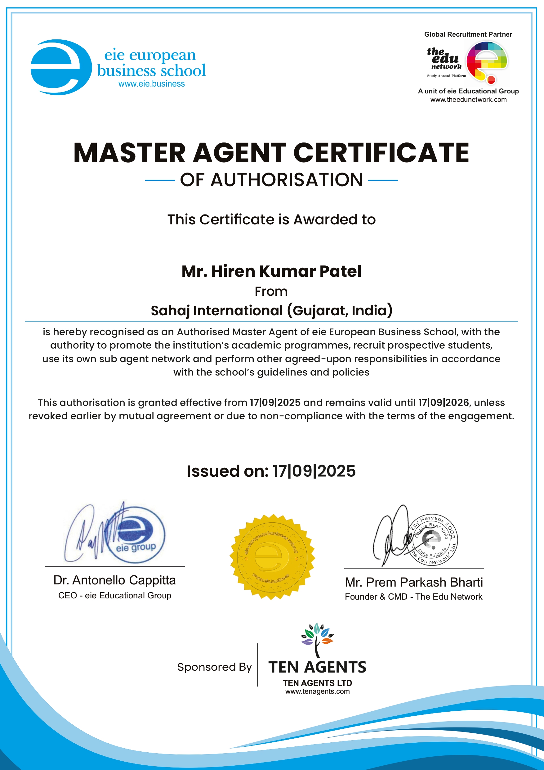 certificate of authorise agent