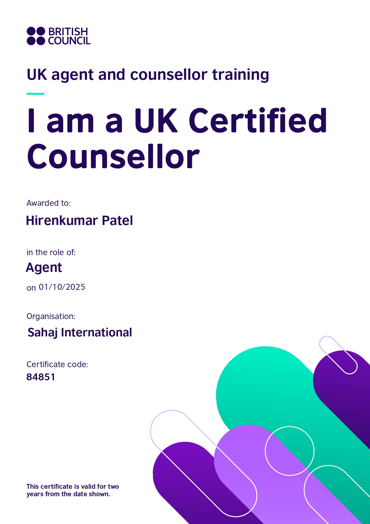 UK certified counsellor